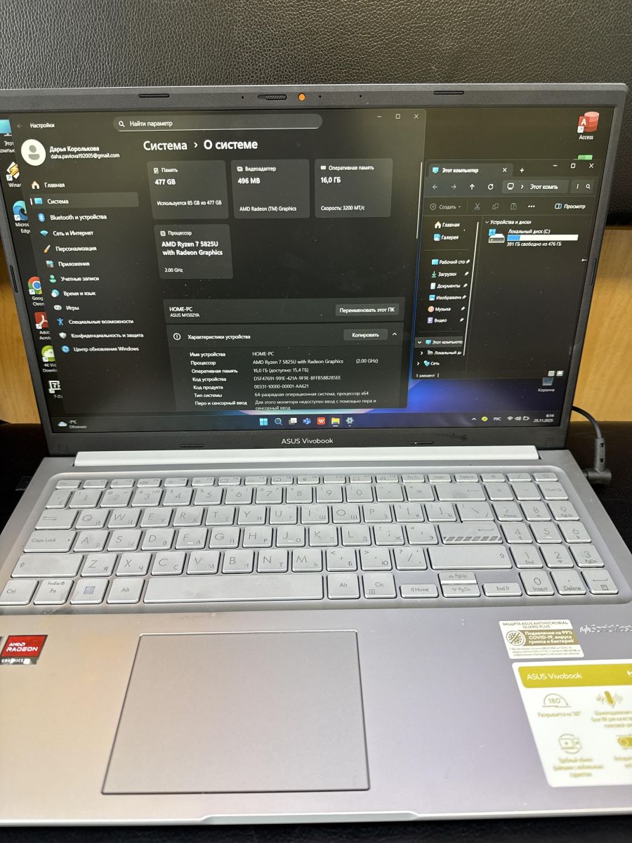 - ПроцессорAMD Ryzen 7 5825U