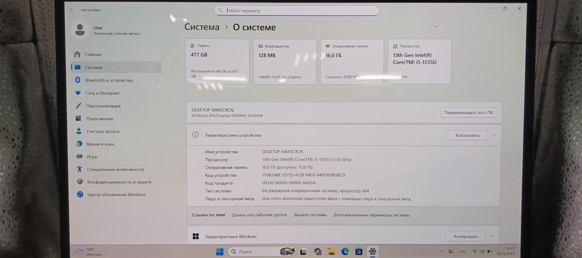- ВидеокартаIntel Iris Xe Graphics