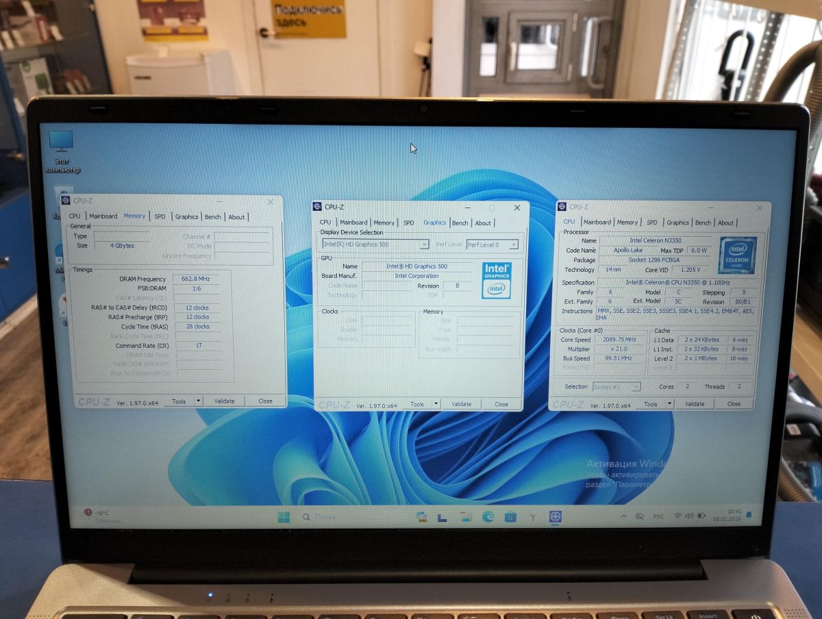 - ПроцессорIntel Celeron N3350