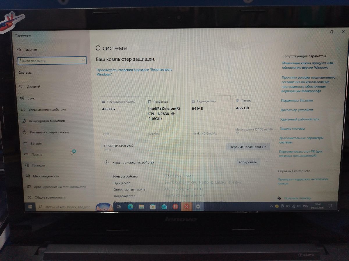- ПроцессорIntel Celeron N2830