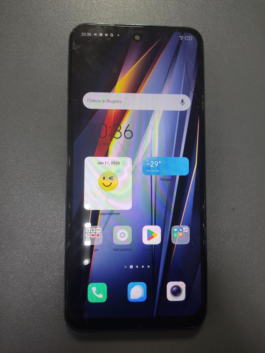 Описание: потёртый внешний вид, трещина на сенсоре