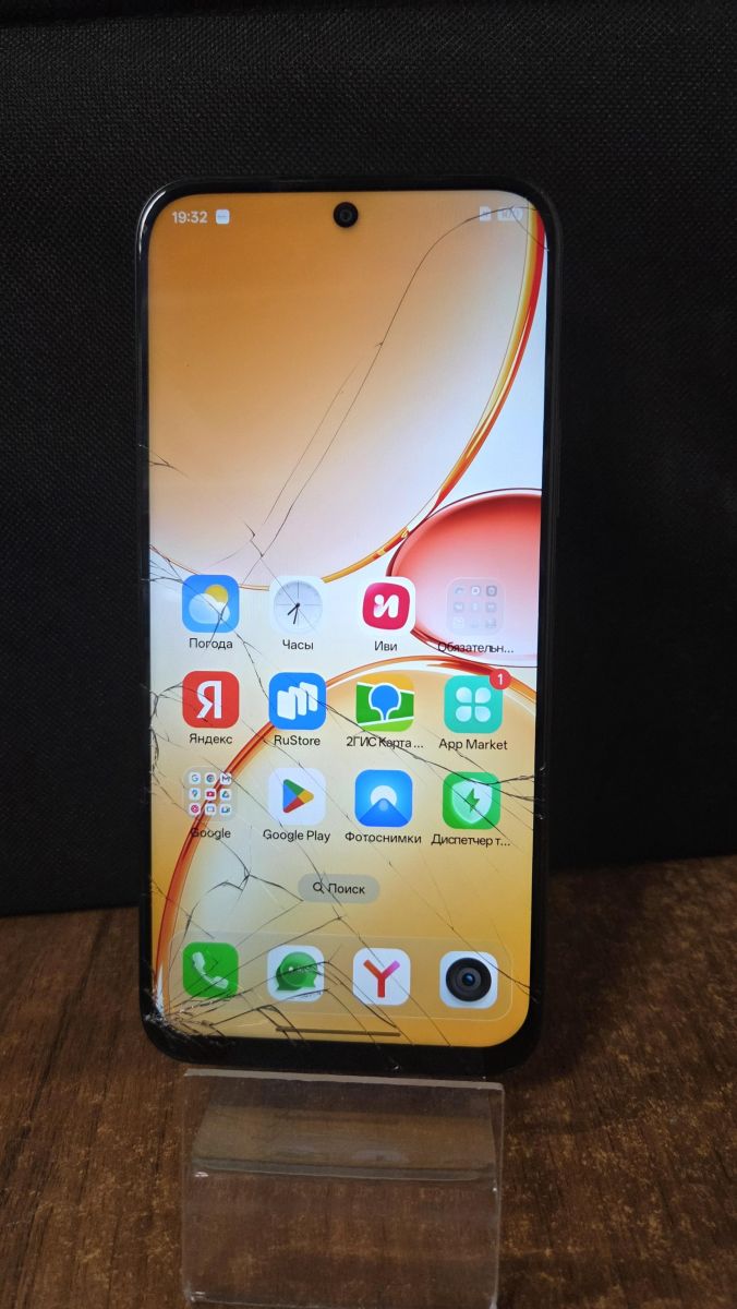 Описание: есть коробка, сильно потёртый внешний вид, трещина на сенсоре