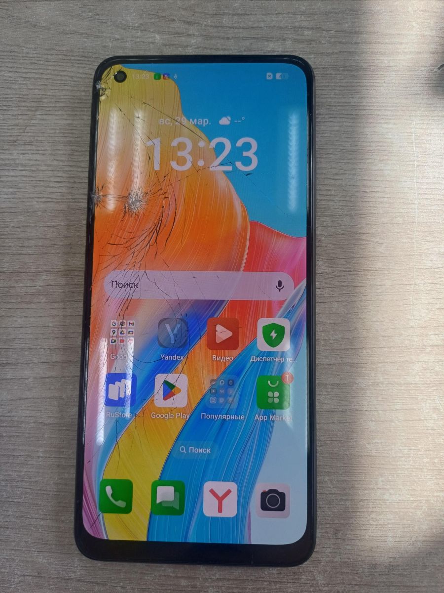 Описание: есть коробка, подтёки на дисплее, сильно потёртый внешний вид, трещина на сенсоре