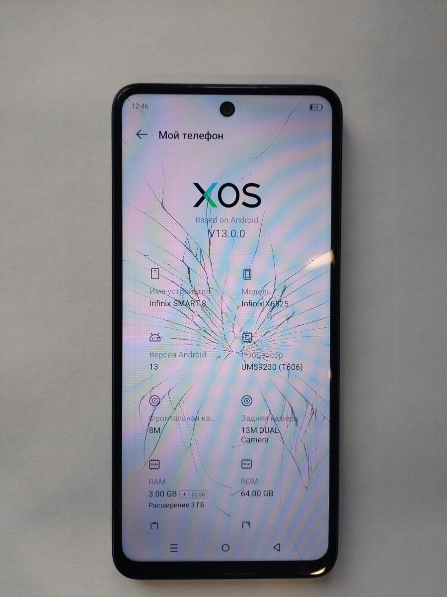 Описание: подтёки на дисплее, сильно потёртый внешний вид, трещина на сенсоре